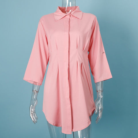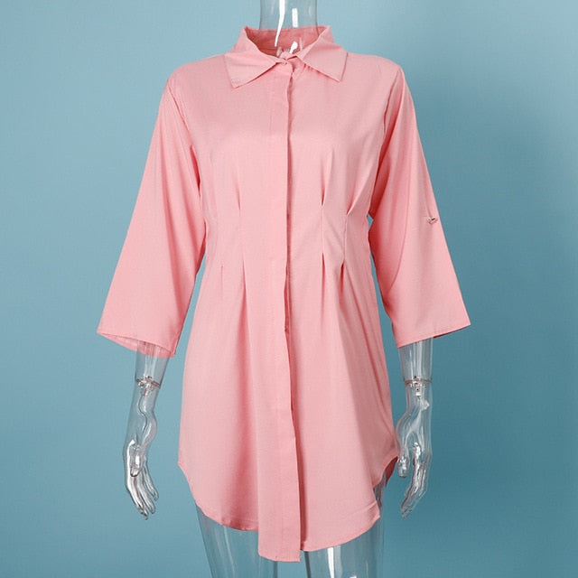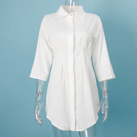 Style1: Summer White Pleated Tunic Women's Long Shirts